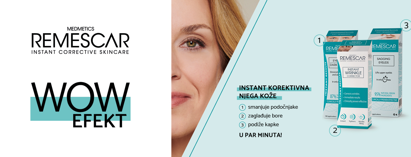 Remescar je linija proizvoda za korektivnu njegu kože i trenutačno vidljive učinke - smanjuju podočnjake i bore, podižu opuštene kapke.