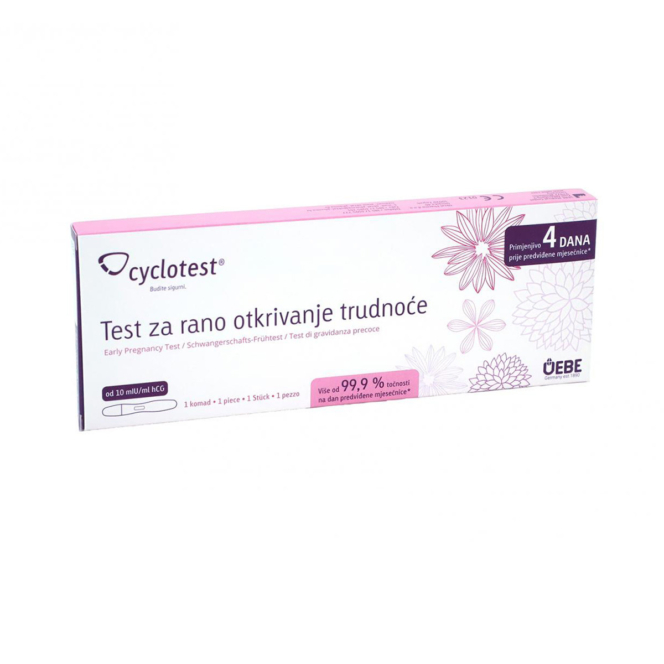 Cyclotest® Test za rano otkrivanje trudnoće je vizualni imunološki test za samotestiranje za kvalitativno određivanje humanog korionskog gonadotropina (hCG) u mokraći radi ranog utvrđivanja trudnoće.
